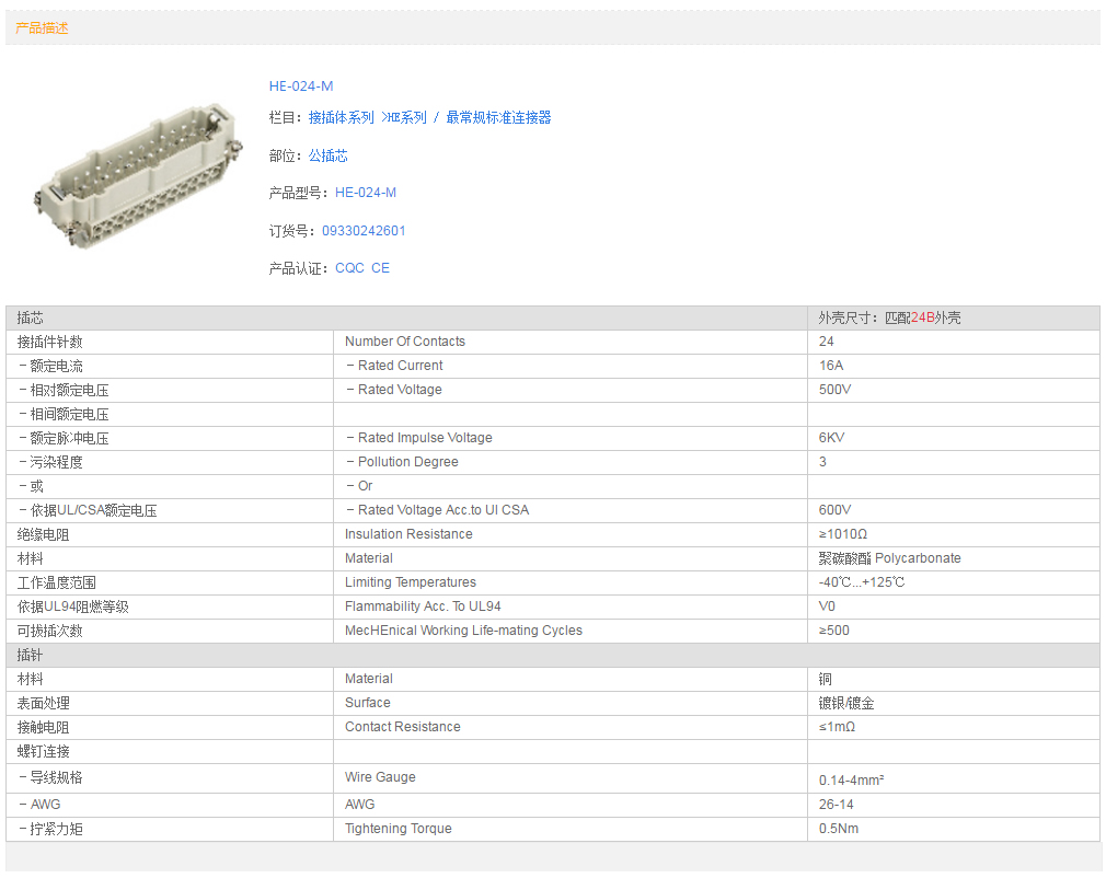 HE系列 / 最常規(guī)標(biāo)準(zhǔn)連接器