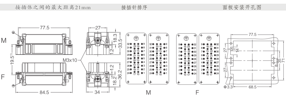 高密度型插芯 冷壓連接 HEE-032-MC ..