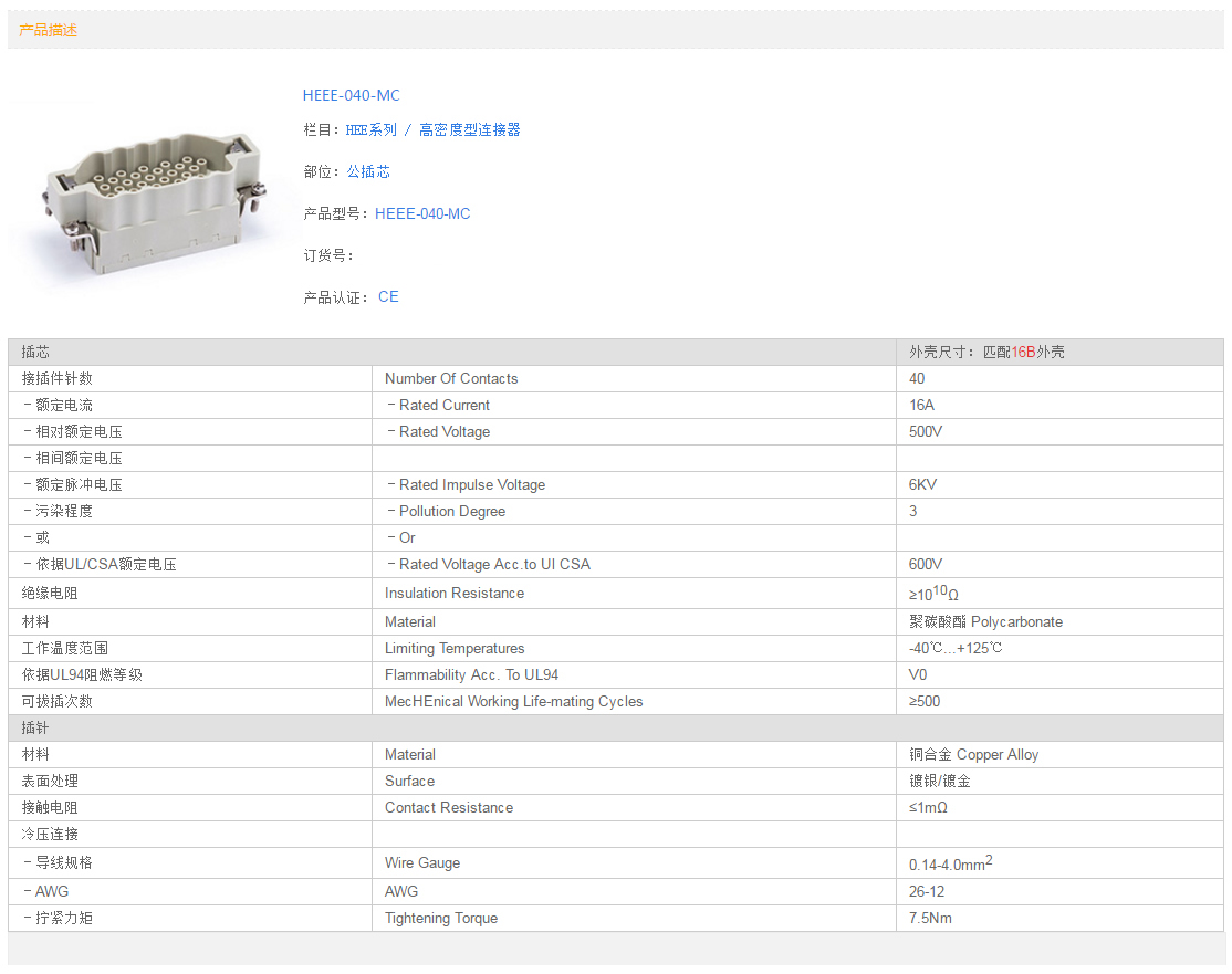 高密度型插芯 冷壓連接 HEEE-040-MC ..
