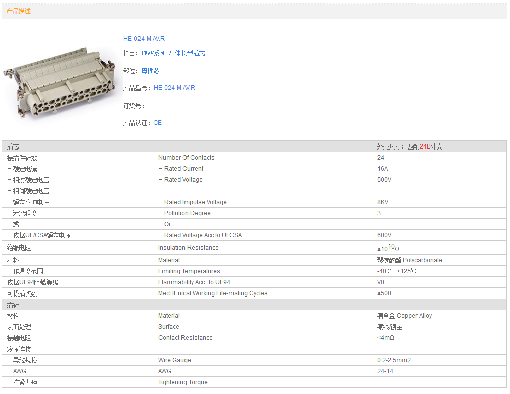 伸長(zhǎng)型插芯 公插芯 螺釘連接 HE-016-M.AV.R ..