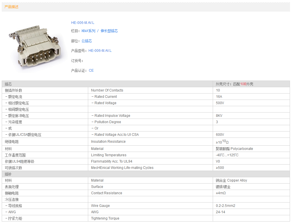 當(dāng)前位置:首頁 -> 產(chǎn)品中心 -> 接插體系列 -> HEAV系列 / 伸長型插芯