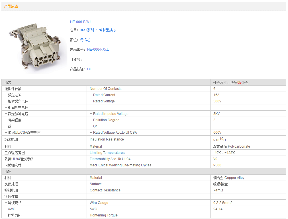 伸長(zhǎng)型插芯 母插芯 螺釘連接 HE-006-F.AV.L ..