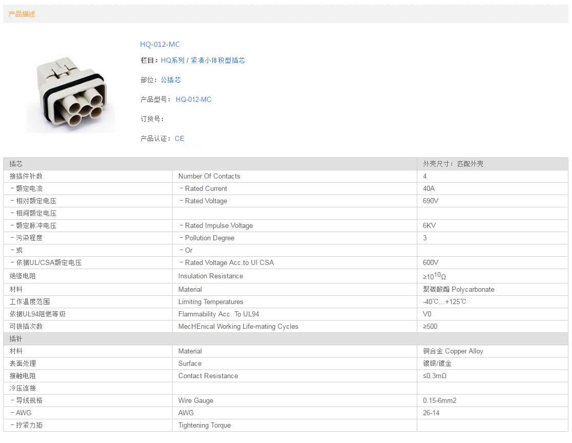 緊湊小體積插芯 冷壓連接 HQ-012 /0-MC ..