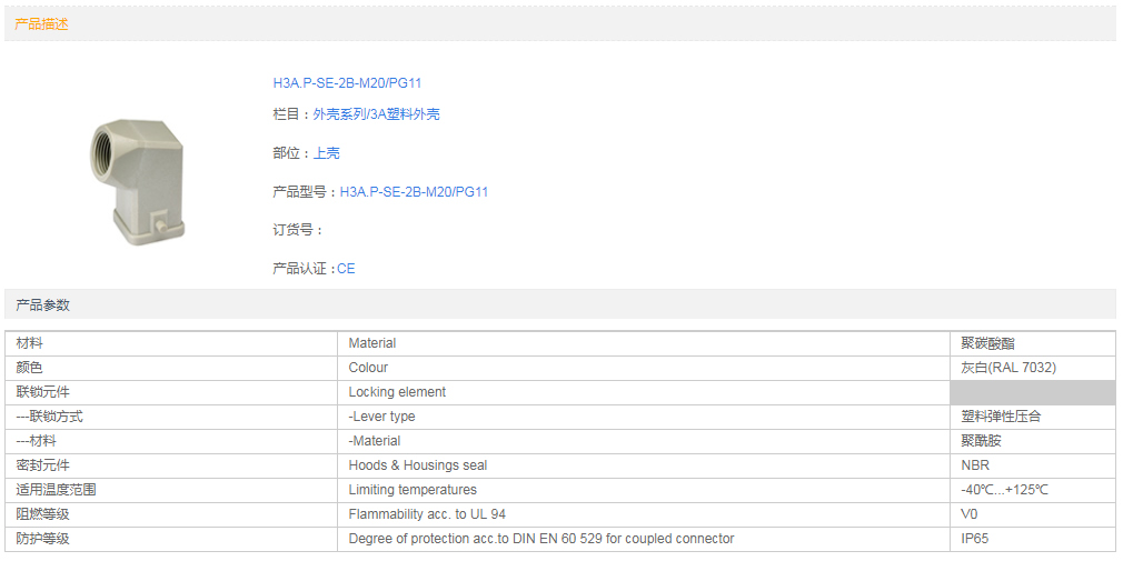• 塑料外殼 上殼頂出線 H3A.P-TE-2B-M20 PG11