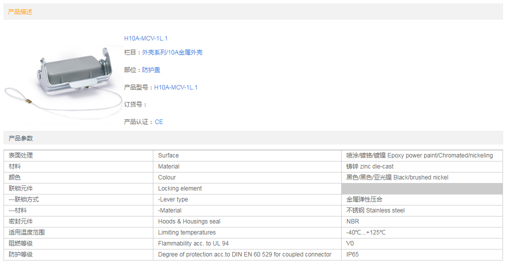 金屬外殼 防護蓋 H10A-MCV-1L.1
