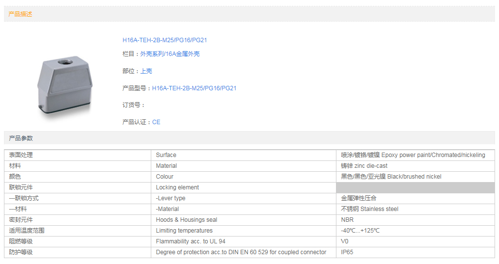 • 金屬外殼 上殼 側(cè)出線 H16A-SE-2B-M20 PG16