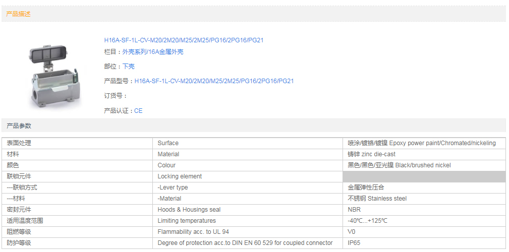 • 金屬外殼 上殼 側(cè)出線 H16A-SE-2B-M20 PG16