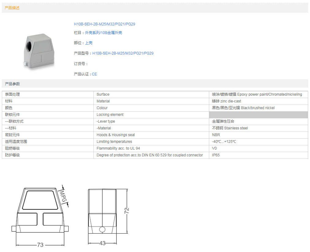 金屬外殼 上殼側(cè)出線 H10B-SEH-4B-M25 M32 PG..