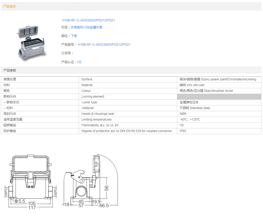 • 金屬外殼 上殼側(cè)出線 高結(jié)構(gòu) H16B-SEH-4B-M32 M40 PG21 PG29