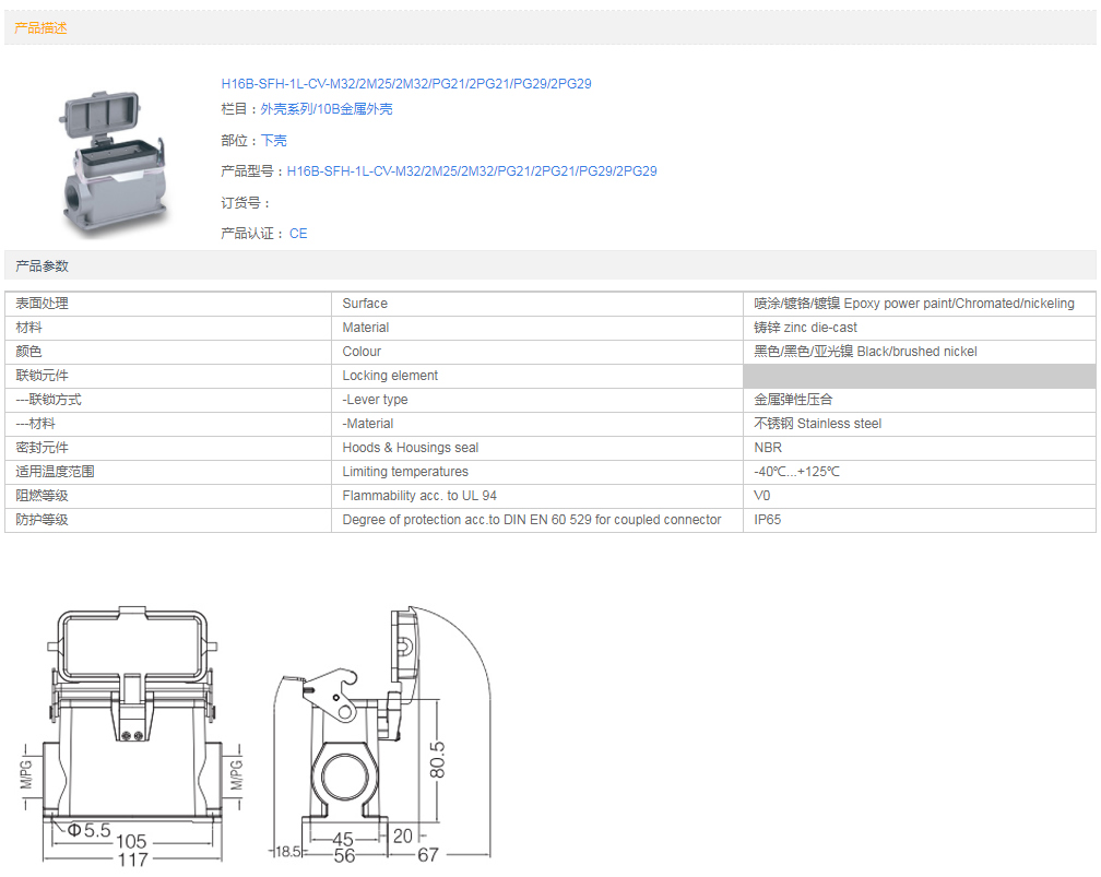 • 金屬外殼 上殼側(cè)出線 高結(jié)構(gòu) H16B-SEH-4B-M32 M40 PG21 PG29
