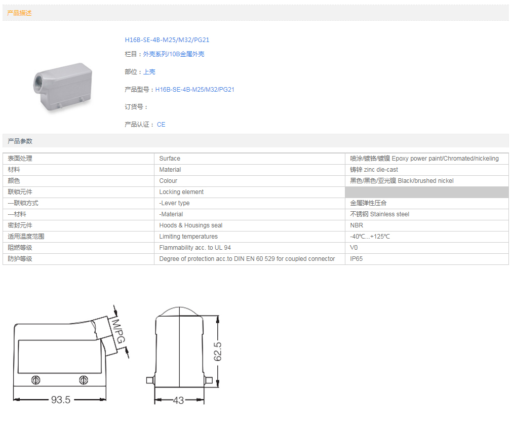 金屬外殼 上殼側(cè)出線 H16B-SE-4B-M25 M32 PG21