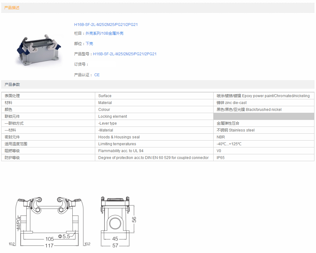 金屬外殼 封底下殼 高結(jié)構(gòu) H16B-SFH-2L-2M25 ..