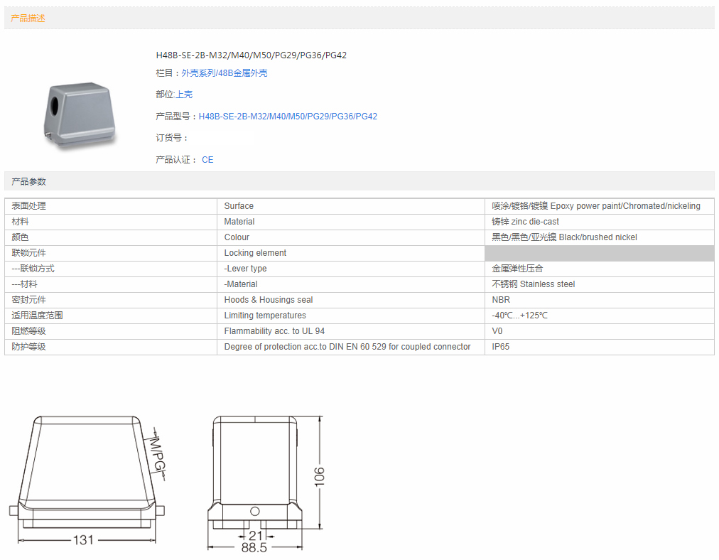 • 金屬外殼 上殼側(cè)出線 H48B-SE-2B-M32 M40 M50 PG29 PG36 PG42