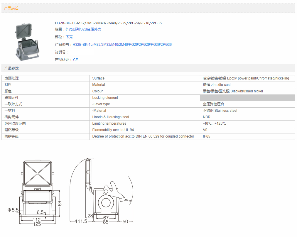 • 金屬外殼 上殼側(cè)出線 H32B-SE-4B-M32 M40 M50 PG29 PG36 42
